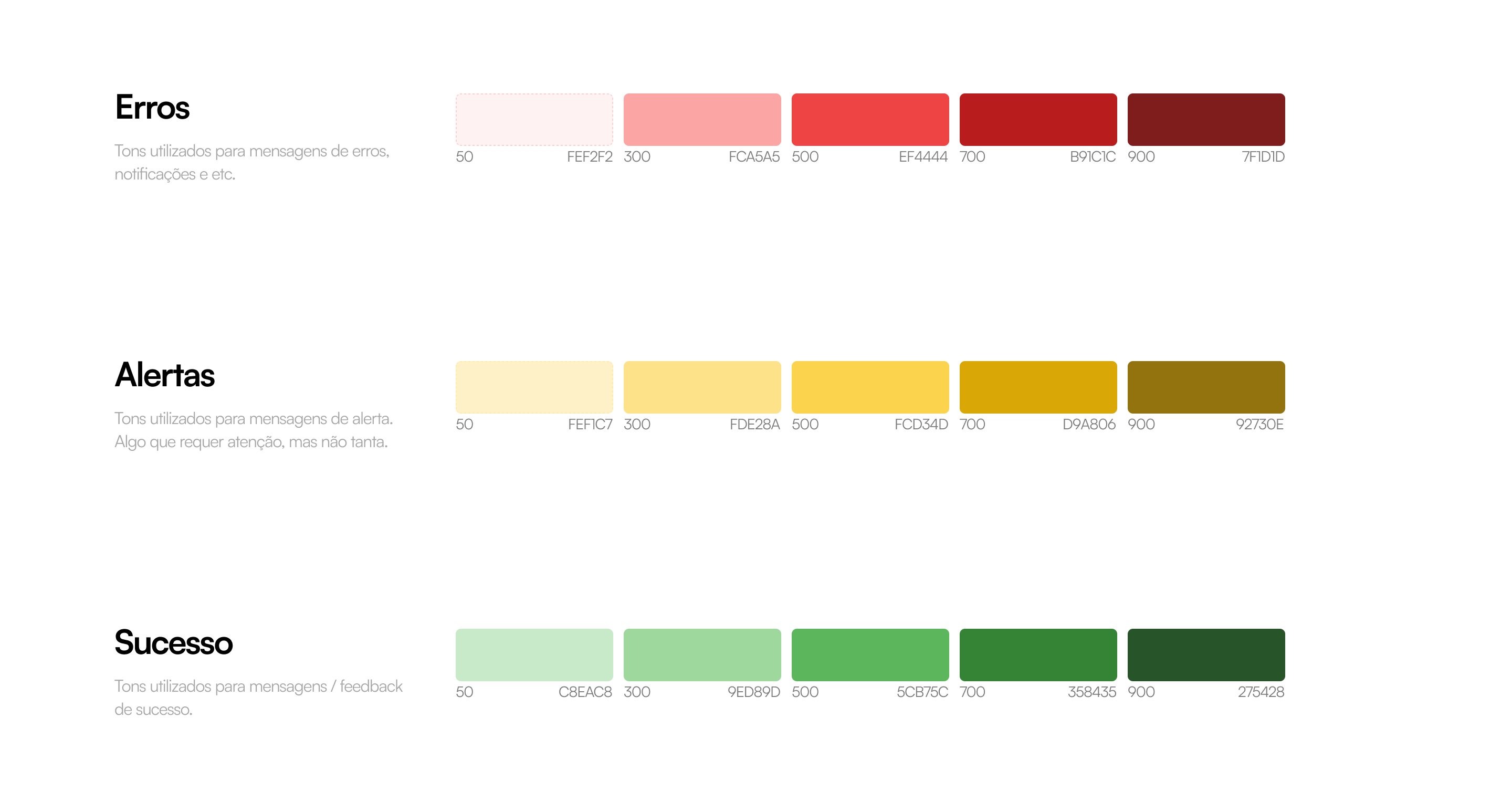 Exemplo das cores de comunicação: erro, alerta e sucesso
